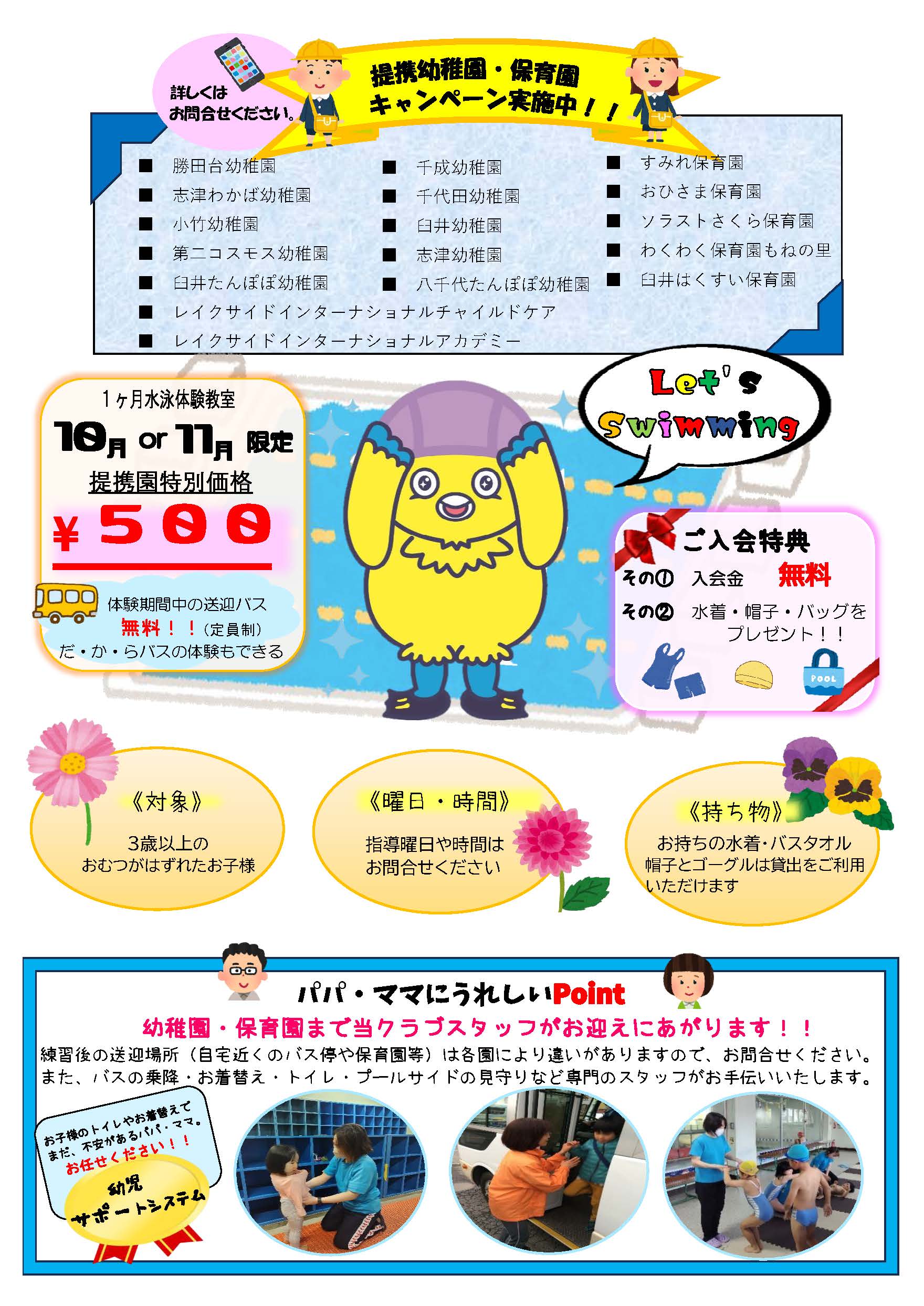 10月・11月限定。提携幼稚園・保育園キャンペンのお知らせです。